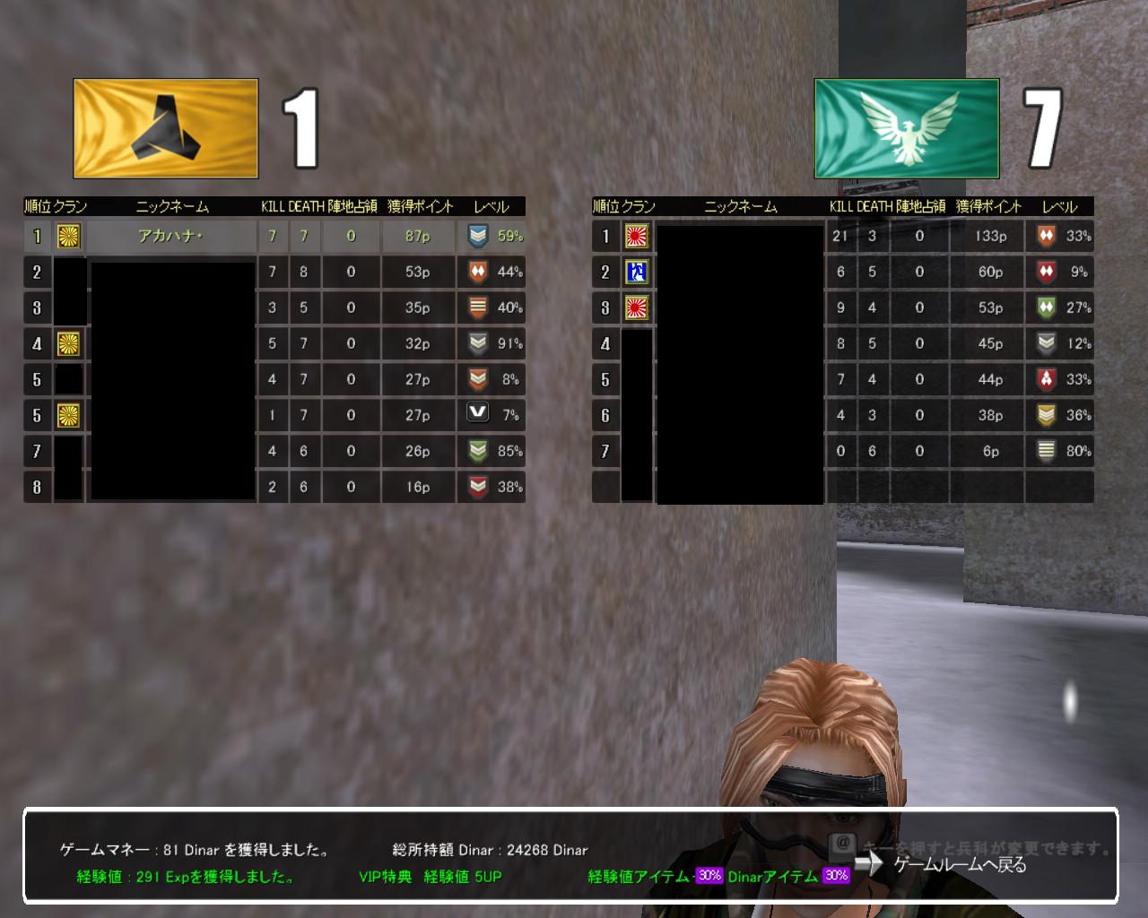 そんなこんなですが、この時の野良はやたらと連携が取れてやってて楽しかったです。しかし、改めて結果見ると味方に0Kが3人よくこれで勝てたなぁと